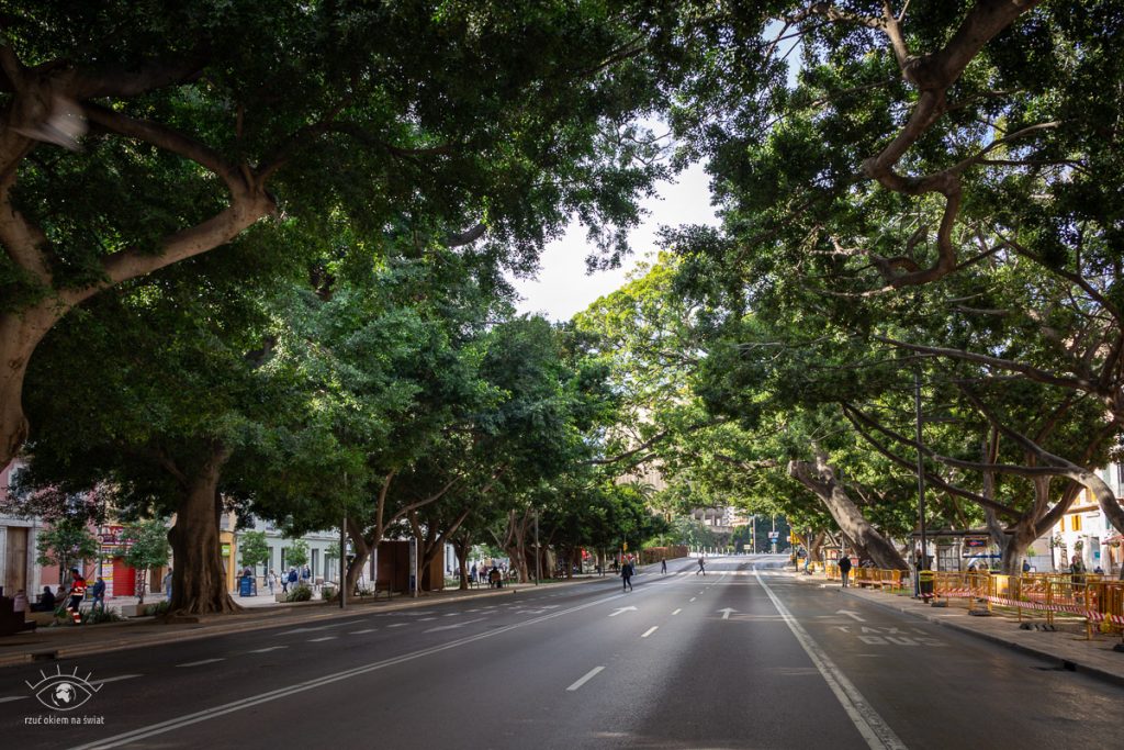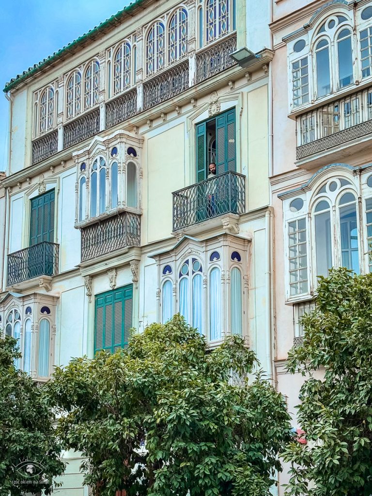 Kierując się w stronę historycznej części Malagi będziecie przekraczać szeroką ulicę Alameda Pricipal. Zwróćcie uwagę na piękne sklepienie, które tworzą gałęzie drzew nad ulicą. Malaga w ten sposób chroni się przed upalnym słońcem. Jest przepiękna.