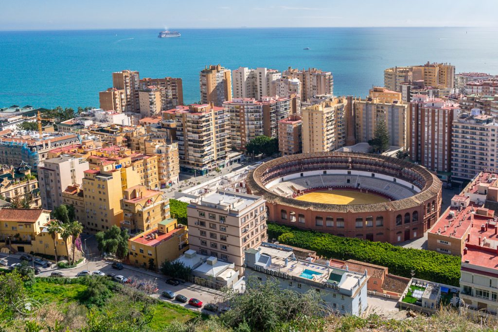 Plaza de Toros de La Malagueta chyba najlepiej podziwiać z punktów widokowych na Zamku Gibralfaro.
